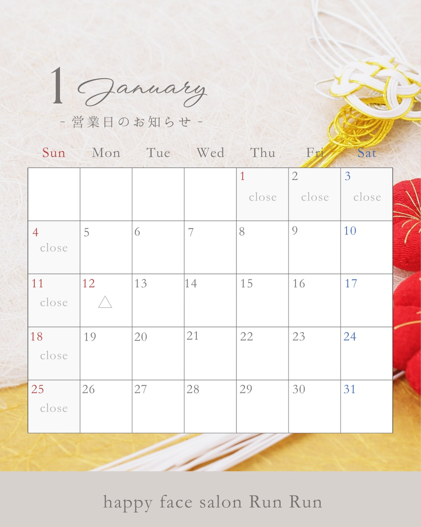 2026年1月の営業日になります✨